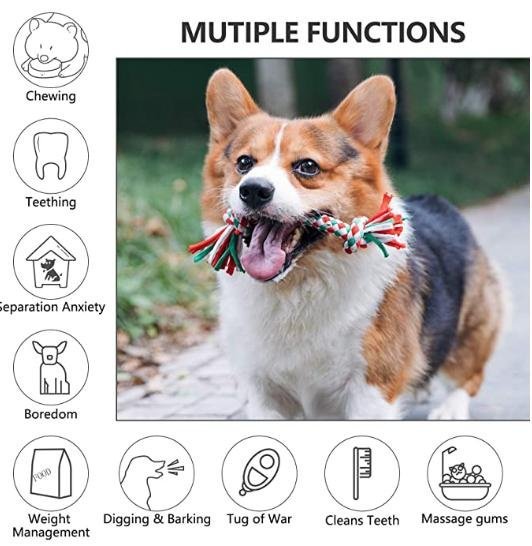 1. [100% pure cotton safe material]: This set of dog rope toys is made of approved natural; 100% non-toxic; compact and bright cotton. The materials and pigments are all food-grade; allowing your dog to play safely ; Chew; and can be cleaned.