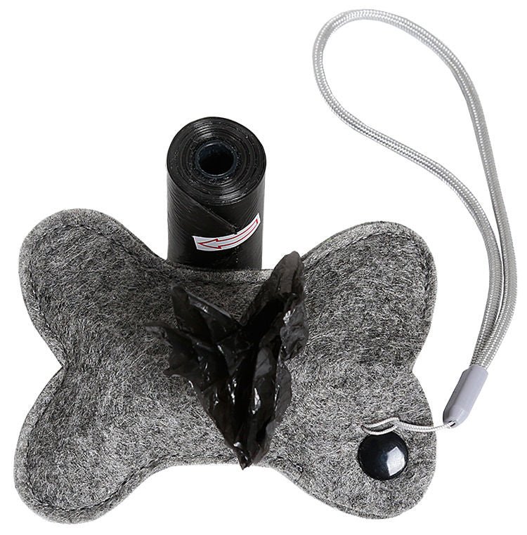 The Pet Life ®Fleece Dog Shaped Travel Waste Bag Dispenser is made of a soft and smooth brushed felt material with a built-in accented safety rope that's designed to wrap around the wrist or attach to any clip for easy travel. The Wastebag dispenser snaps off for easy and convenient placement of Wastebags. Includes 2 Rolls of 15 Wastebags.
