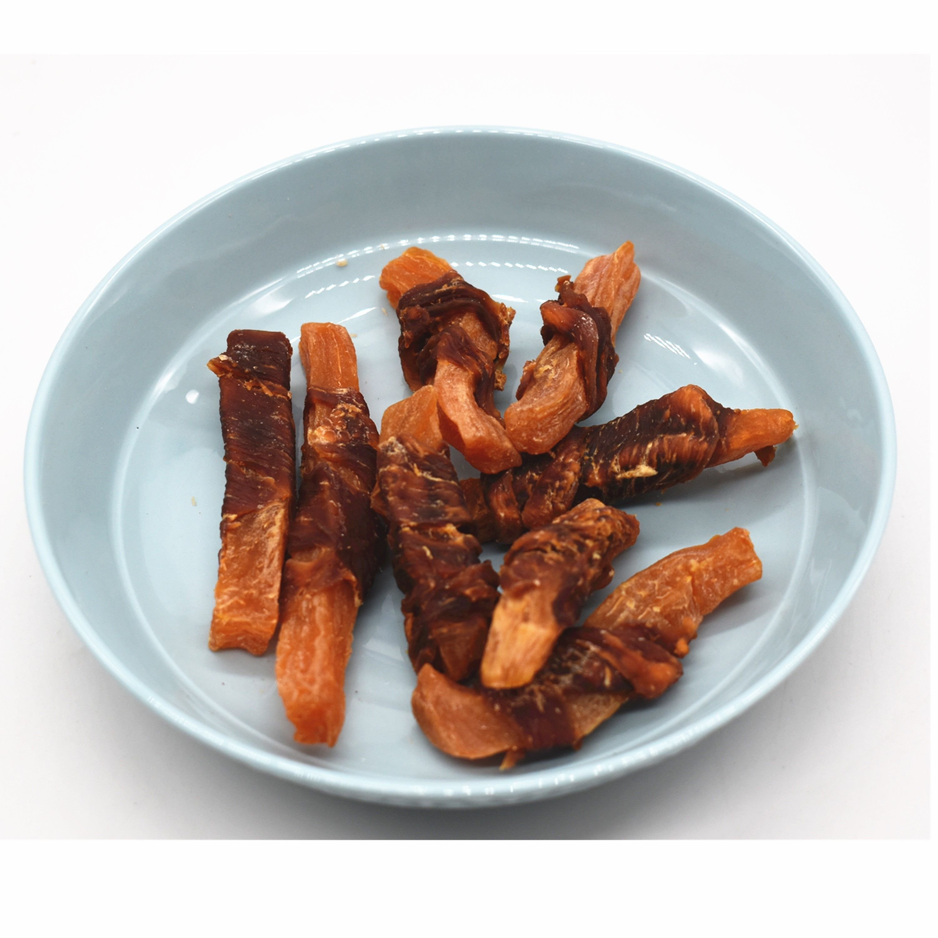 Pet snack is very popular among dogs. Dog treats can be used as a training prop for dogs, but also can enhance the bond between dogs and owners. Dog snacks is a very good food.Composition: sweet potato60% chicken25% soy protein3% peanut protein2% corn starch2% flour2% glycerin4% sorbital powder 1.8% salt0.2%.