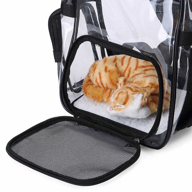 Multiple Use & Easy Care --- This is not only used as cat carrier but also school bag or travelling bag. The backpack has both fashion and practicability. PVC material is easy to wash by hand with soap and water.